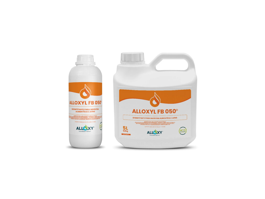 Desinfecção final de embalagens – lavar as embalagens com detergente e enxaguar com água potável. Enxaguar as embalagens com Alloxyl FB 050® na diluição recomendada e manter em contato por 10 minutos. Deixar secar.